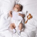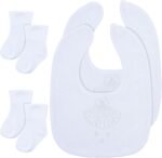 The bib and socks for baby boy boasts a classic white color that compliments any outfit and is suitable for special occasions. This unisex color adds an exquisite touch, lifting their look from cute to irresistibly adorable.