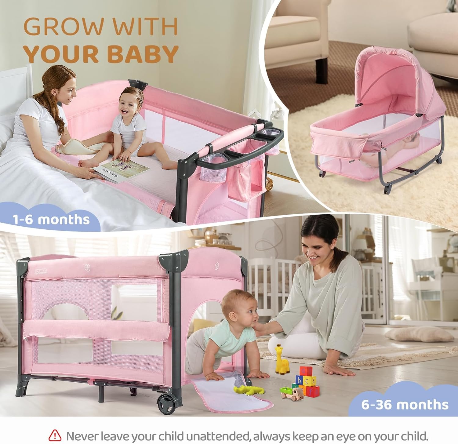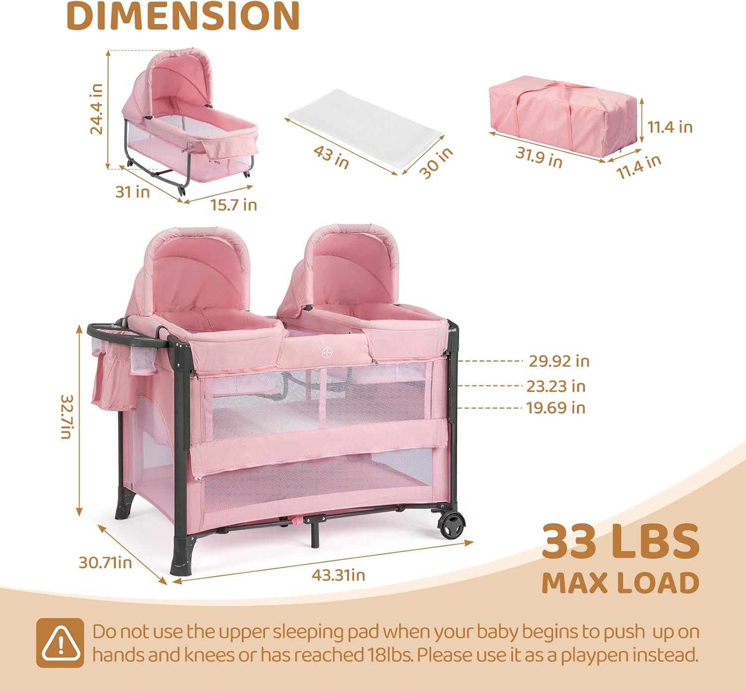 Versatile Design: This double sleeper can be easily converted into a baby bassinet, bedside crib, or playpen, making it suitable for different stages of your babies’ growth. It offers convenience and flexibility for parents. It includes a zippered door for baby to climb in and out of.