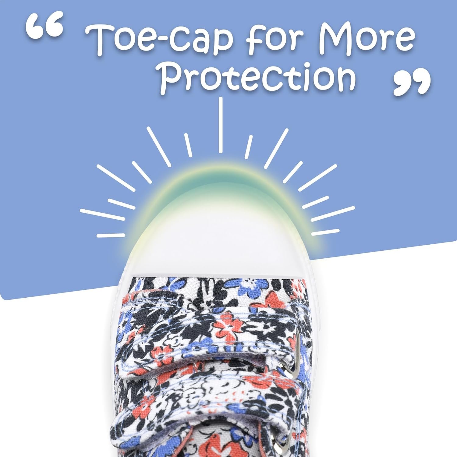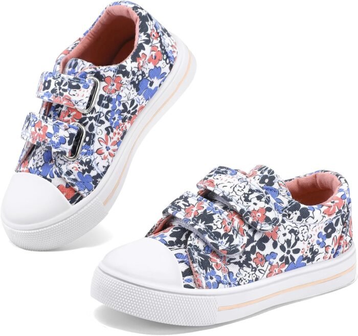 Customers find these sneakers cute, well-made, and easy to put on and take off, particularly appreciating that they accommodate wide feet. The shoes offer good value for money and hold up well with active toddlers. Customers disagree on whether they run true to size, with some finding them true to size while others say they run large. The durability receives mixed feedback, with some saying they’re durable while others report them falling apart on the sides, and customers disagree on the weight, with some finding them not heavy while others describe them as bulky.