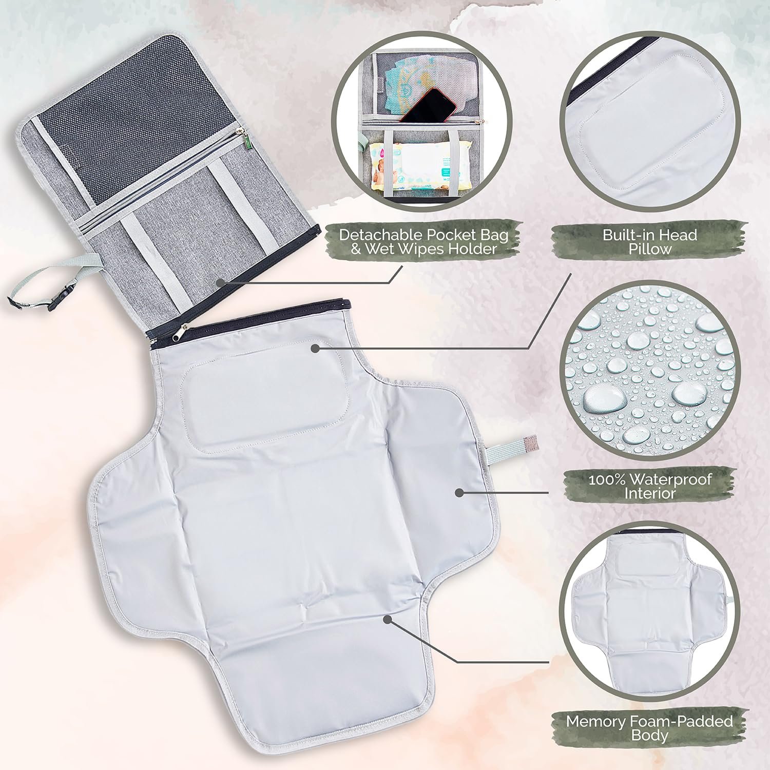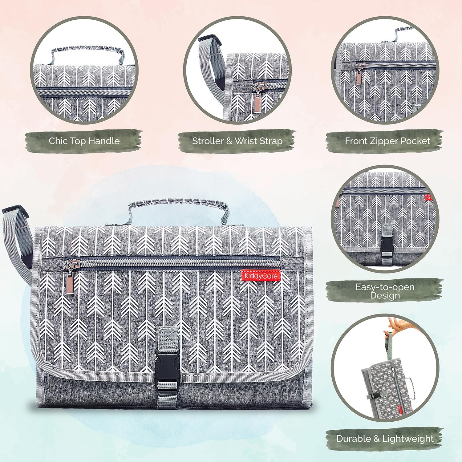 BUILT-IN MEMORY FOAM PILLOW: The KiddyCare baby changing pad, portable, includes a comfortable pillow to cradle your baby’s head gently. This baby changing mat provides cloud-like support that turns routine changes into moments of serenity.