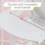 LIFT-UP TRAY: Put baby doll in the high chair by lifting up the tray and sliding the doll in. Rubber stops keep little fingers safe. A toy bar with moveable wood beads is attached to entertain “baby”, just like in real high chairs.