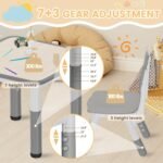 Height Adjustable: The toddler table and chairs set has 7 precise settings (18.9″-23.6″) plus 1.6″ rotatable legs to fix uneven floors. The kids desk chair offers 3 comfy height options (21.3″-22.8″) for different sitting postures. Perfect for drawing, reading or playing, it adapts to your child’s changing needs, an enduring companion from toddlerhood to early school years
