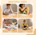 Multi-purpose and Practical: This toddler activity table has a 23.7″×23.7″ wooden tabletop, great for kids’ drawing, writing, eating, and play. And more importantly, its extra-spacious surface fits arts and crafts with crayons/pencils, thickened edges prevent item falls. Versatile for playrooms, classrooms, or daycares, it works as a eating table, play table, or study table