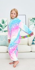 Very cute soft children’s pajamas,special unicorn hooded design,with ears, eyes, nose, tail , make the child look like a real unicorn