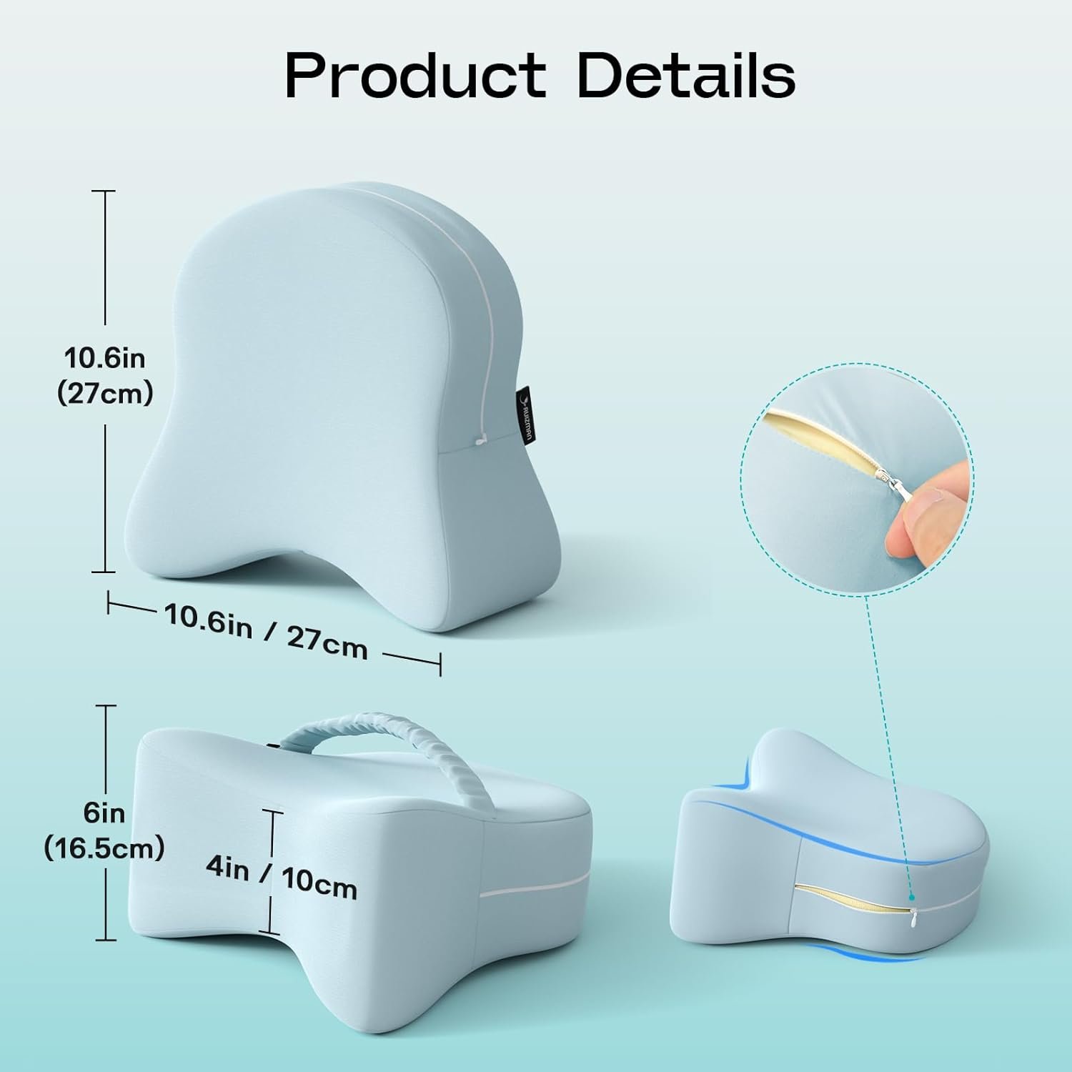 【High-density Memory Foam】Our between the legs pillow for side sleepers uses 100% premium memory foam, it slowly sinks when under pressure and gradually rebounds once the pressure is removed. When fitting your legs, the cooling knee pillow for side sleepers adjusts its softness according to your body temperature and provides long-lasting comfort for hours.