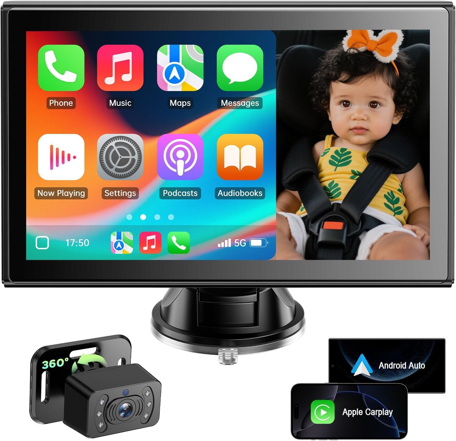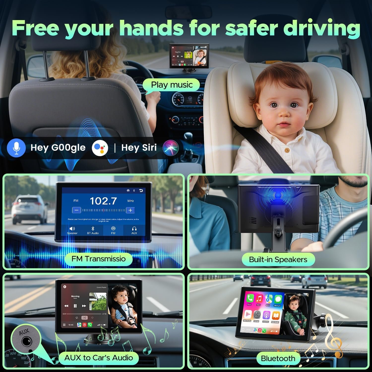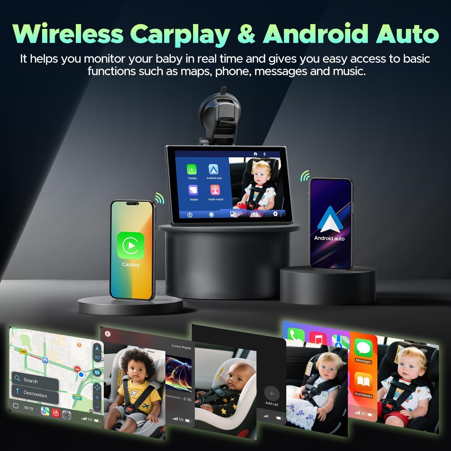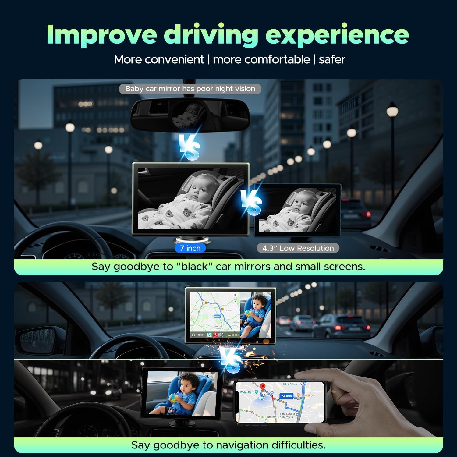 All-in-One Car Display & Baby Monitor: Drive safer with our 7″ split-screen monitor that combines a baby rear camera and wireless CarPlay/Android Auto display. Watch your baby and navigate at the same time without distractions.