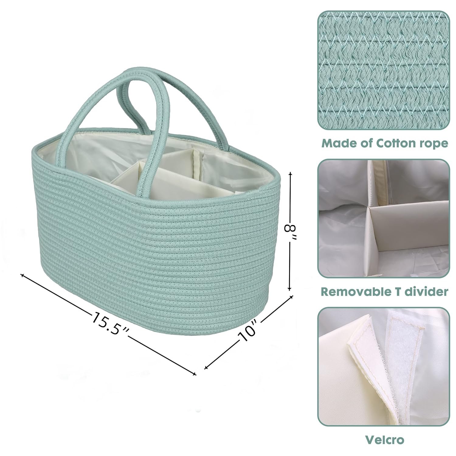 Versatile baby organizer for newborn products: XUANGUO diaper holder is perfect for your changing station as changing table organizer, baby organization or anywhere in your home. This baby storage caddy or diaper basket is portable with sturdy handles, easy to carry. The removable divider can be easily taken out and use it as baby hamper, baby bath caddy or nursery basket for additional nursery storage. Gender neutral solid color compliments any nursery decor.