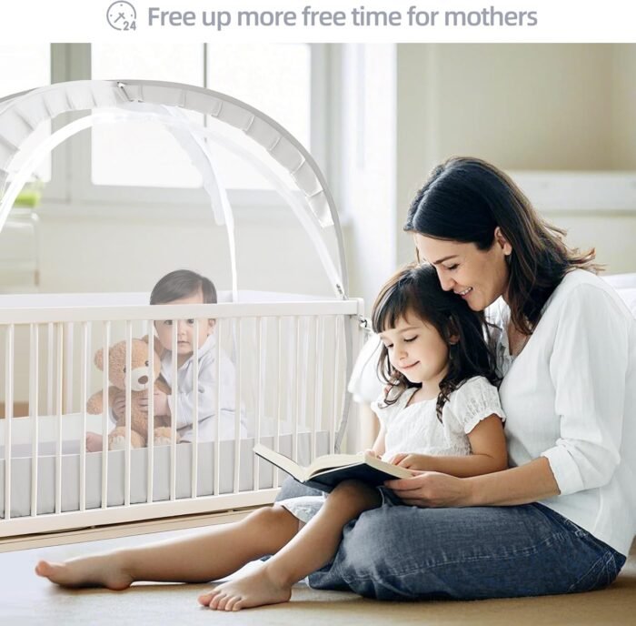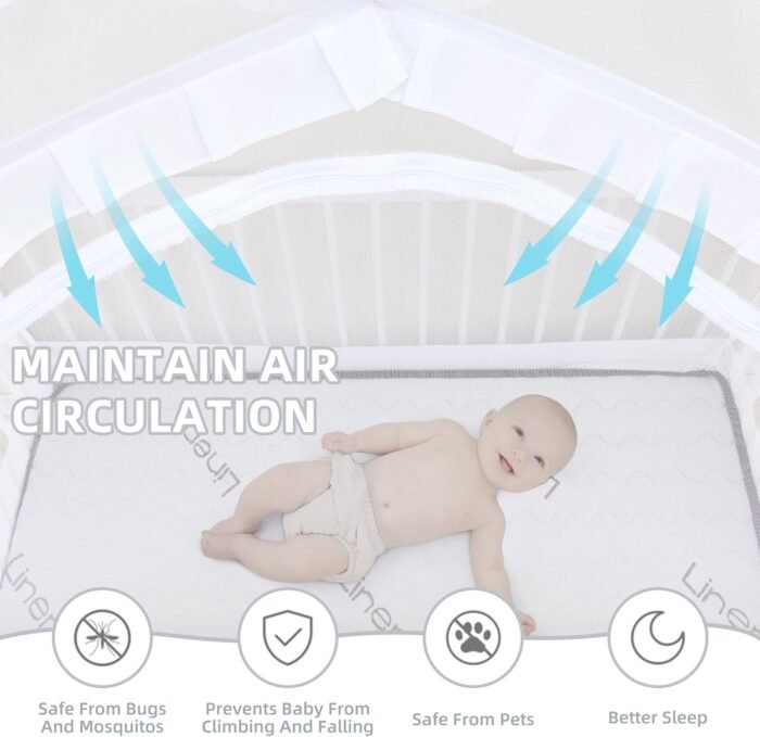 ❤️【Premium Material & Breathable Design】Crafted with durable premium material and 1200 holes/inch mesh, this crib tent ensures optimal air circulation, keeping baby comfortable and cool.