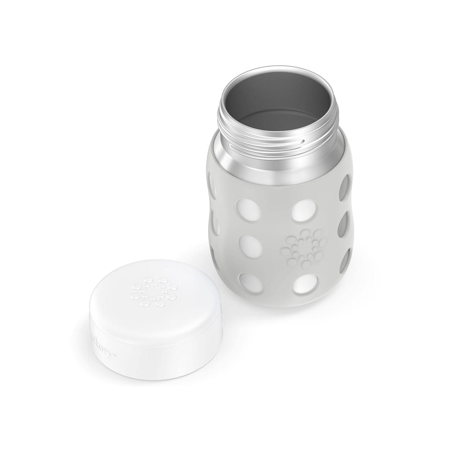 LIFEFACTORY 8oz wide neck stainless steel baby bottle includes a silicone sleeve and polypropylene cap