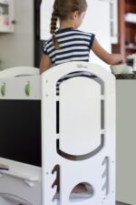 Solid Wood Construction – Limited edition Learning Towers with side rails for kids are made with birch LVL wood and let children comfortably and safely help out in the kitchen or with household tasks and grow their confidence