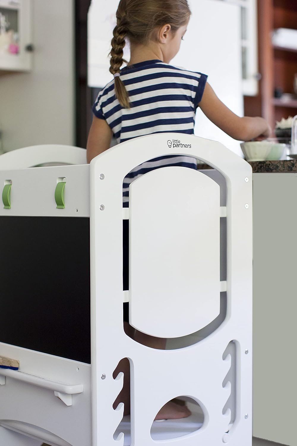The Learning Tower Plus Chalkboard – Designed by a Montessori school principal, this adjustable limited edition step stool platform lifts children to counter height and features a drawing chalkboard to encourage interaction and imagination
