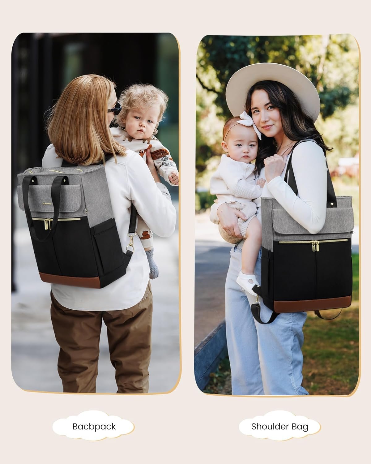 【More than one diaper bag】Can be used as a backpack, handbag, shoulder bag, elegant, suitable for shopping, travel and many other occasions. The practical and neutral design makes this diaper bag backpack perfect for traveling with your boys and girls two kids.