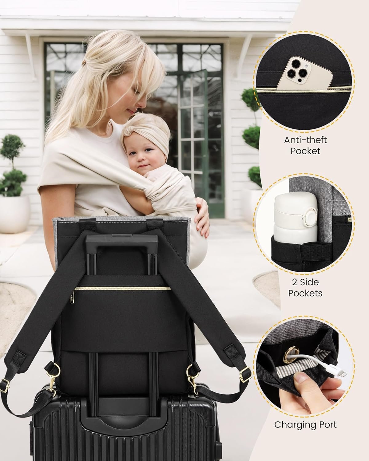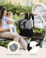 【Multi-Pocket】Baby diaper bags have 12 pockets, our baby diaper bags include a padded laptop pocket inside, two bottle insulated pockets with three compartment pockets, two external pockets and two side pockets, and a pacifier case pouch for diapers, clothes, toys, water cups, umbrellas, and most newborn items. There are also super handy changing diaper pads.