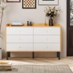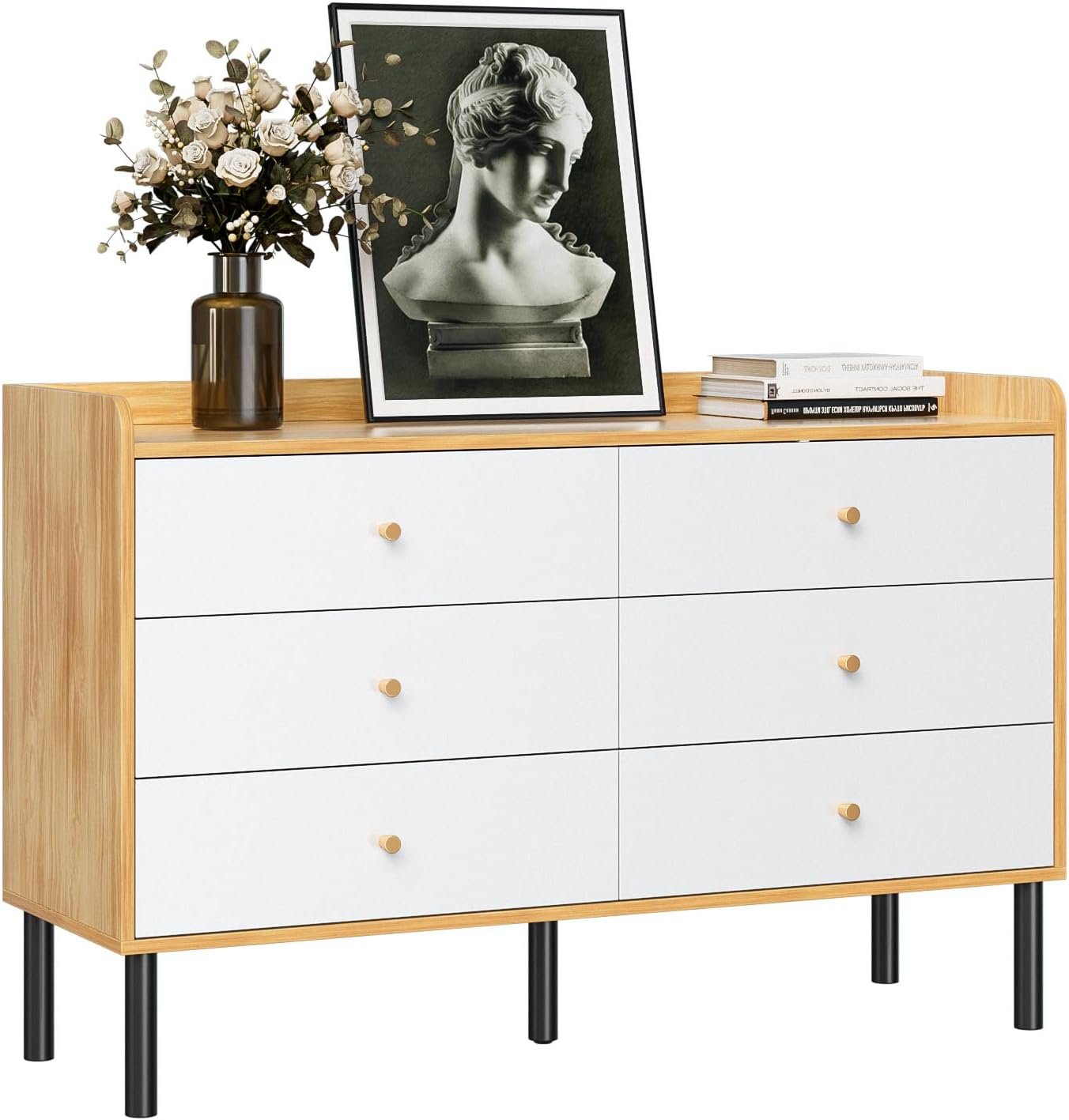 【Modern Design】Featuring a chic white finish paired with a natural wood frame, this 6 drawer dresser is accented with sleek metal handles and legs. Its versatile design fits any room and adds refinement to any living space.