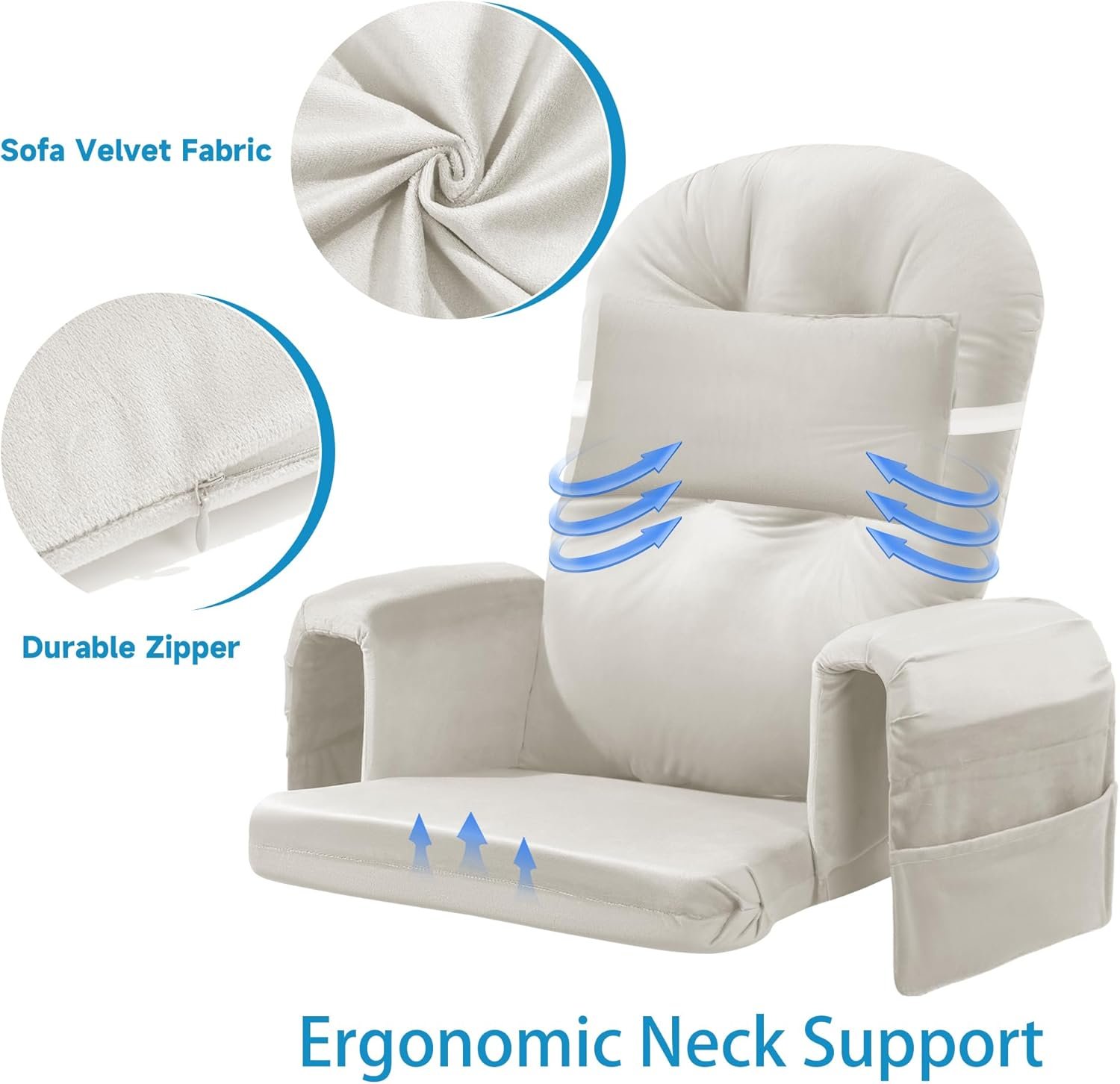 【Detachable Neck Pillow】This glider rocker replacement cushions comes with detachable neck pillow, the neck pillow is removable designed. It can be used as neck pillow knee pillow or back pillow support, can be more useful than other patio rocking chair cushion set, providing more convenience and comfy when you are sleeping.