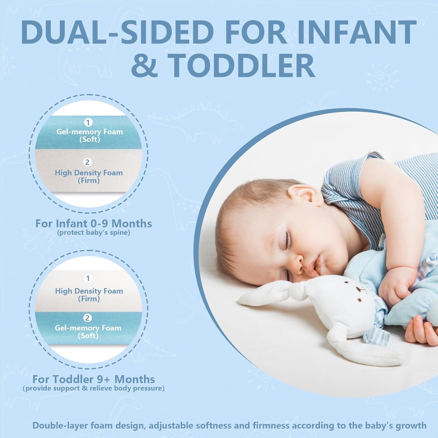 Safety Certification: Our pack n play mattresses are passed by CertiPUR-US Certified Foam to ensure optimum health and safety. Engineered with High Density Support Foam and Gel Memory Foam, mochen pack and play mattress provides dual firmness and support for your infants or toddlers while they rest or play