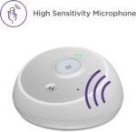 High sensitivity microphone with sound level indicator. Using LED light present the level of noise in your baby’s room with the high sensitivity microphone. You won’t miss any annoying noise.