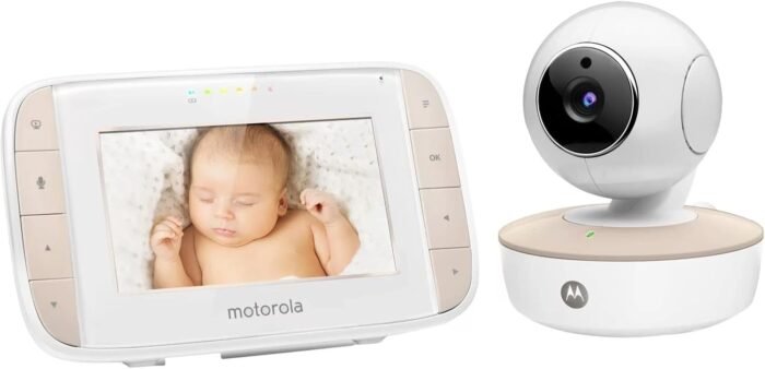 Keep an eye on your baby with the Motorola MBP44 video baby monitor that comes with a 4.3” viewing screen.