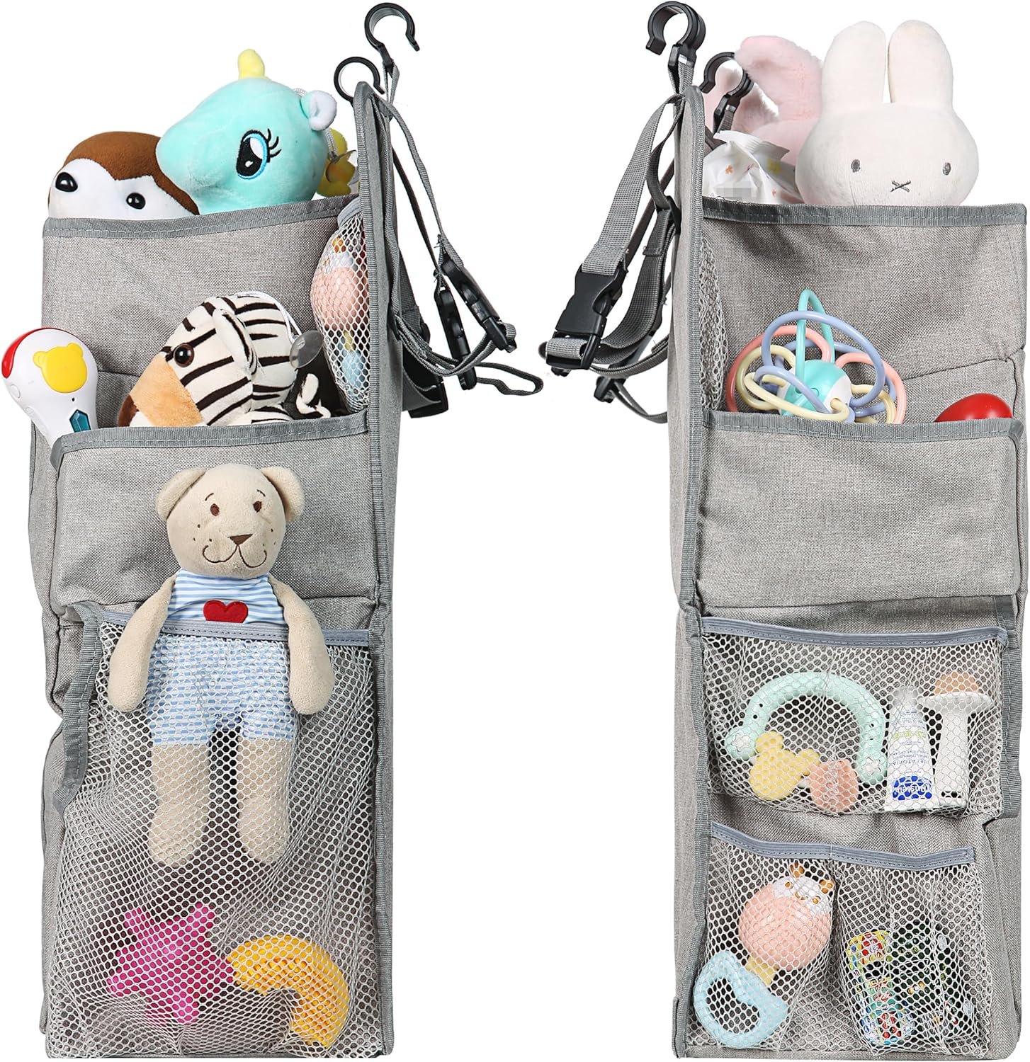 The organizer features multiple side pockets, including mesh compartments, which provide quick access to frequently used items such as baby lotions, toys, or pacifiers.