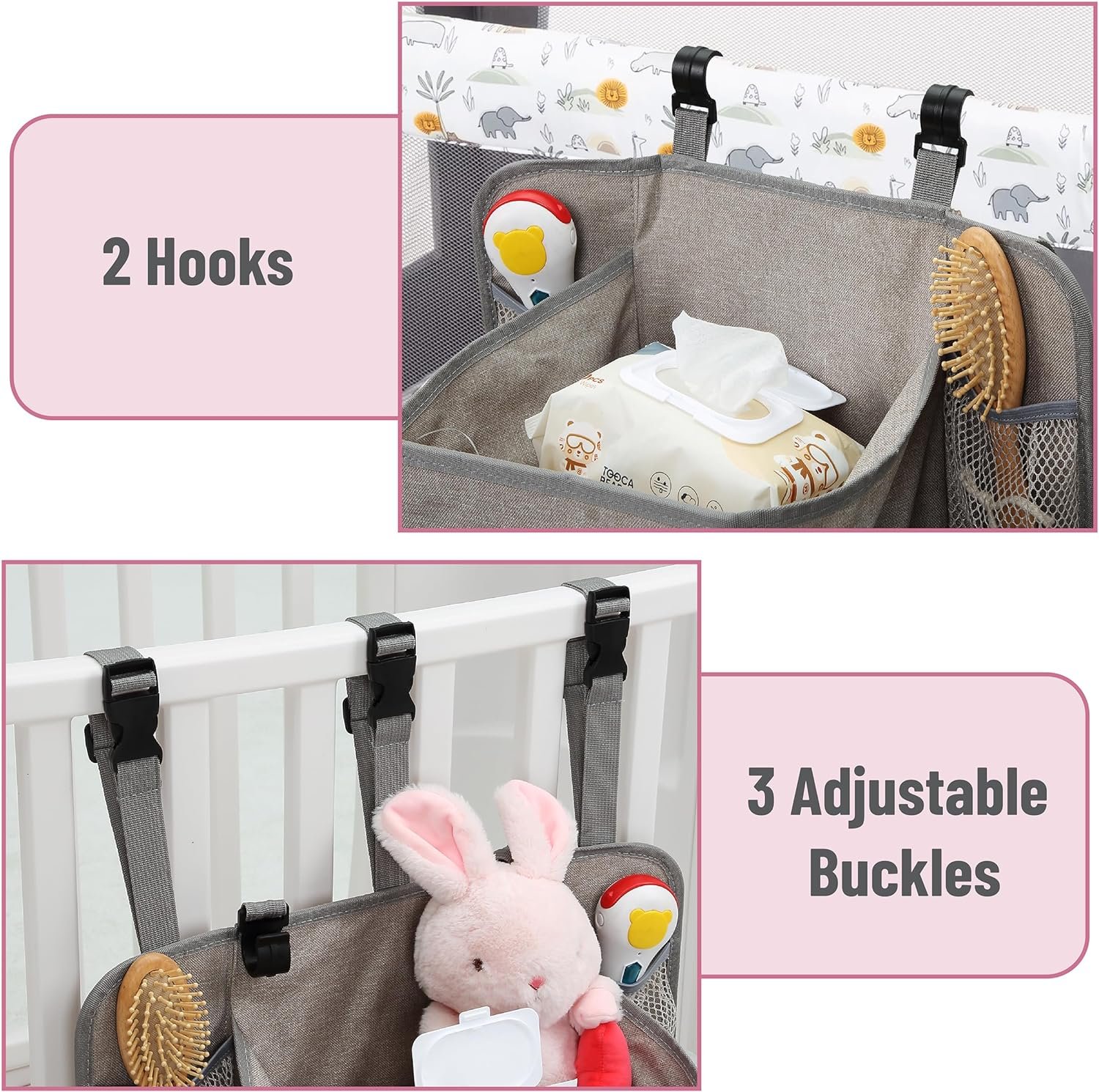 - Its adjustable straps ensure secure hanging from cribs, changing tables, or doors, offering flexibility in placement and optimal space utilization.