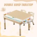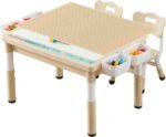 This kids table set includes 1 building blocks table and 2 chairs, making it an ideal toy gift for both boys and girls. It’s perfect for children aged 3 to 10. The table measures 29.5 inches (Width) x 23.6 inches (Depth) x 20.5 inches (Height); the chairs measure 11.8 inches (Width) x 11.4 inches (Depth) x 22.8 inches (Height).