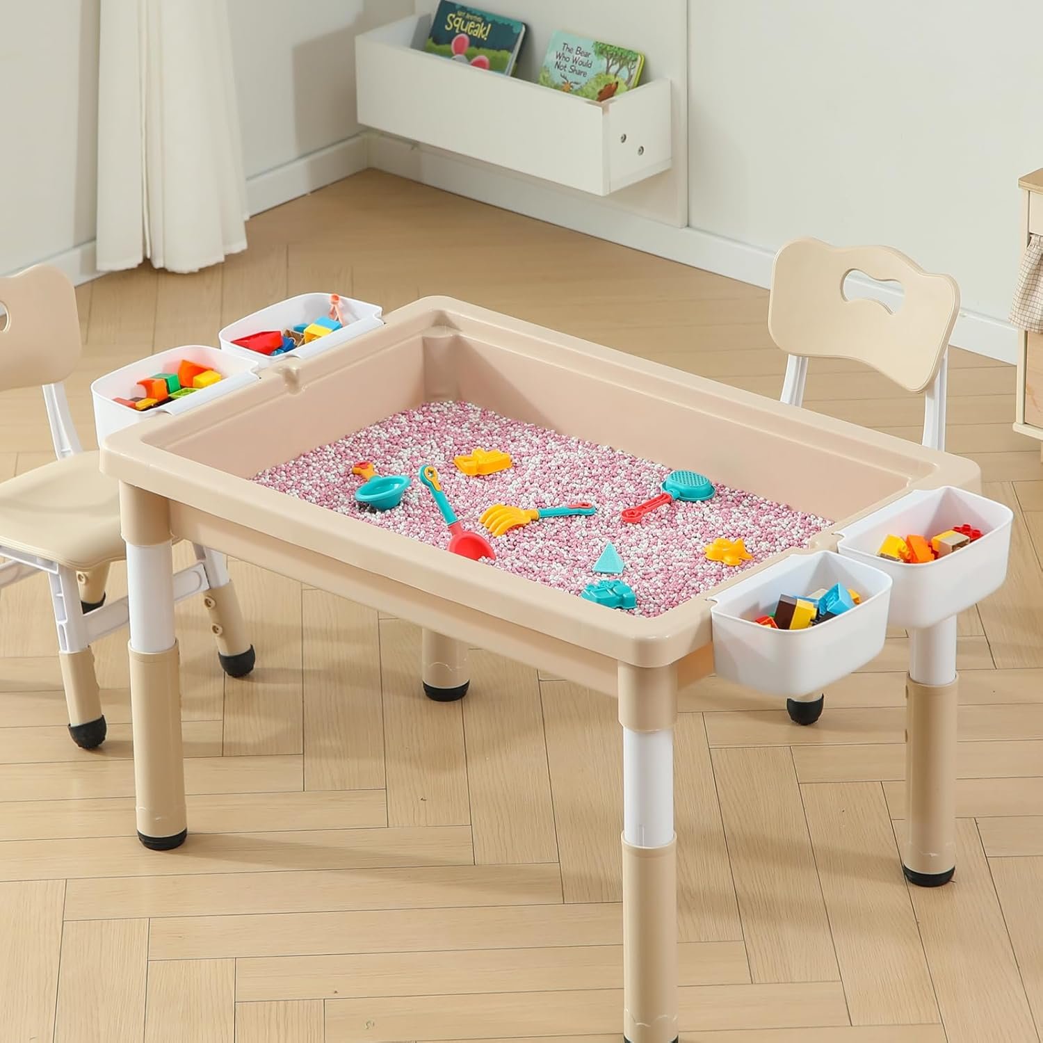 Customers praise the play table’s high-quality materials and solid construction, with one noting it’s built with kids in mind. The table features useful tabletop storage that holds plenty of toys, and customers find it easy to assemble, with one mentioning everything snaps together securely. They appreciate its size, with one customer noting it’s big enough for two kids to play comfortably, and its compatibility with building blocks. Customers find the table simple to clean and suitable as a gift for children aged 3 and up.
