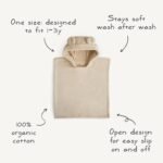 Cuddle Up in Comfort: An open poncho design makes it easy to slip on an off busy toddlers. The machine washable fabric is absorbent and durable, staying soft wash after wash.