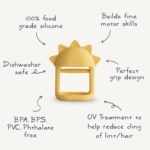 For Little Hands and Mouths: With an easy-to-grip interior handle, littles can improve fine motor skills while exploring the soothing textured surfaces. No-Drop Sun teether measures 4 x 2 x 4.12″ (10.16 x 5.08 x 10.46 cm)