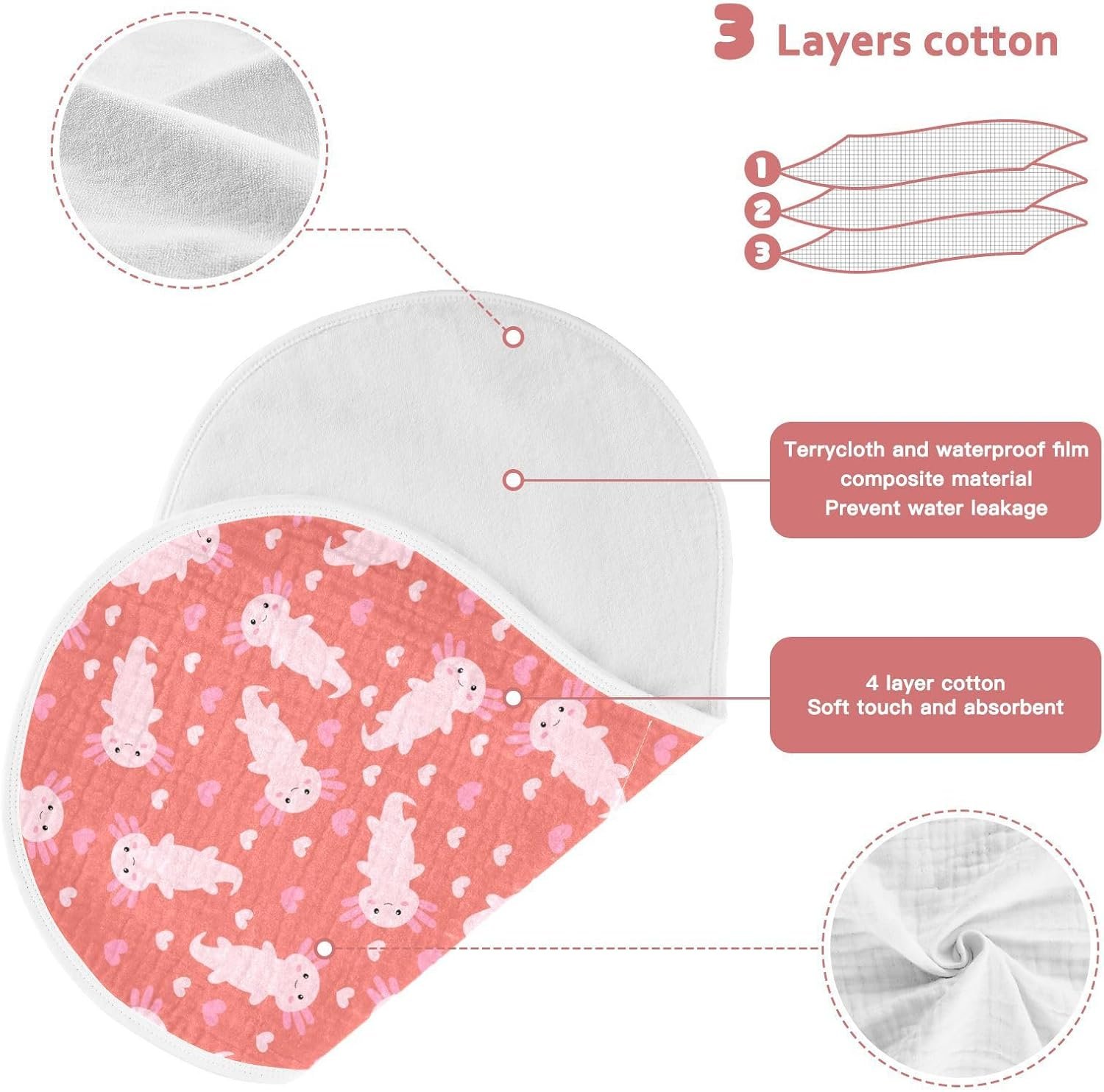 SOFT AND COMFORTABLE: Our baby burp cloth is made of 100% cotton on the front and non-slip polyester fleece back, which is super absorbent, soft and skin-friendly for delicate and sensitive newborn skin.