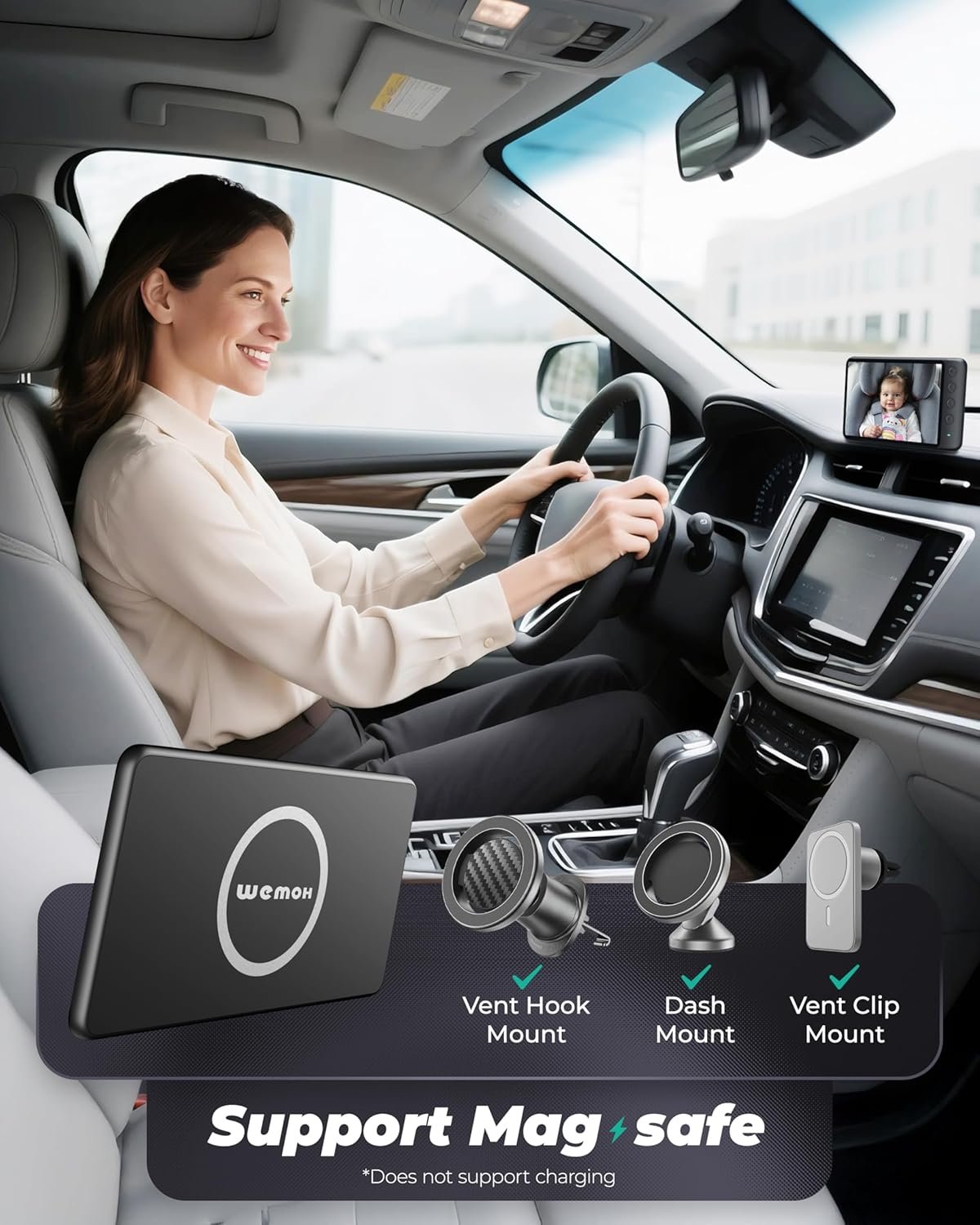 Battle-Tested Magnetic Monitor + Easy-Safe Stash: No drops, no drama! Upgraded magnetic car baby monitor lock tight on bumpy roads. Easily Detach & toss it in your car glovebox/console when parked. Avoid sun damage and theft prevention