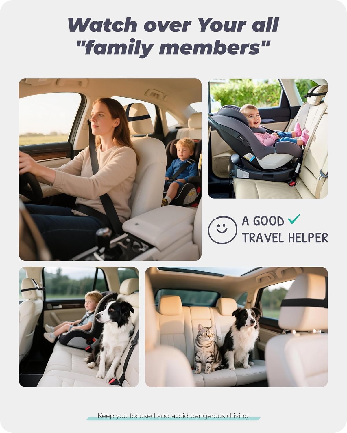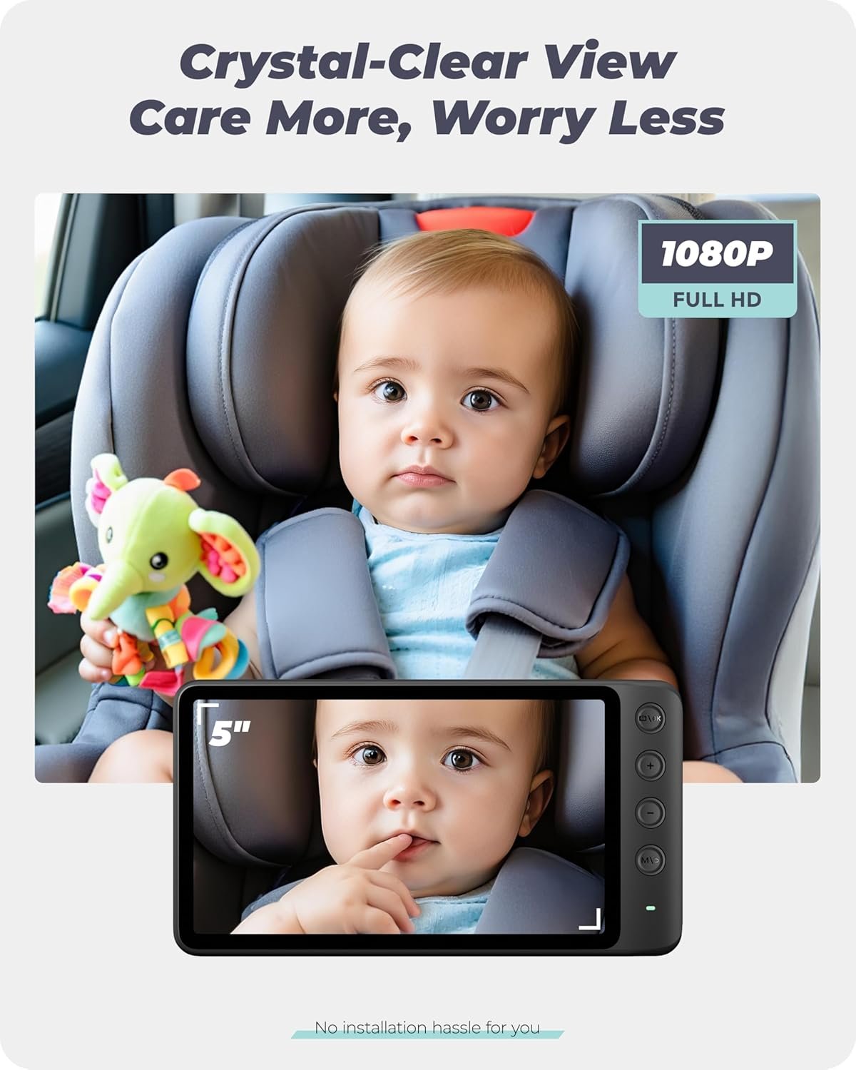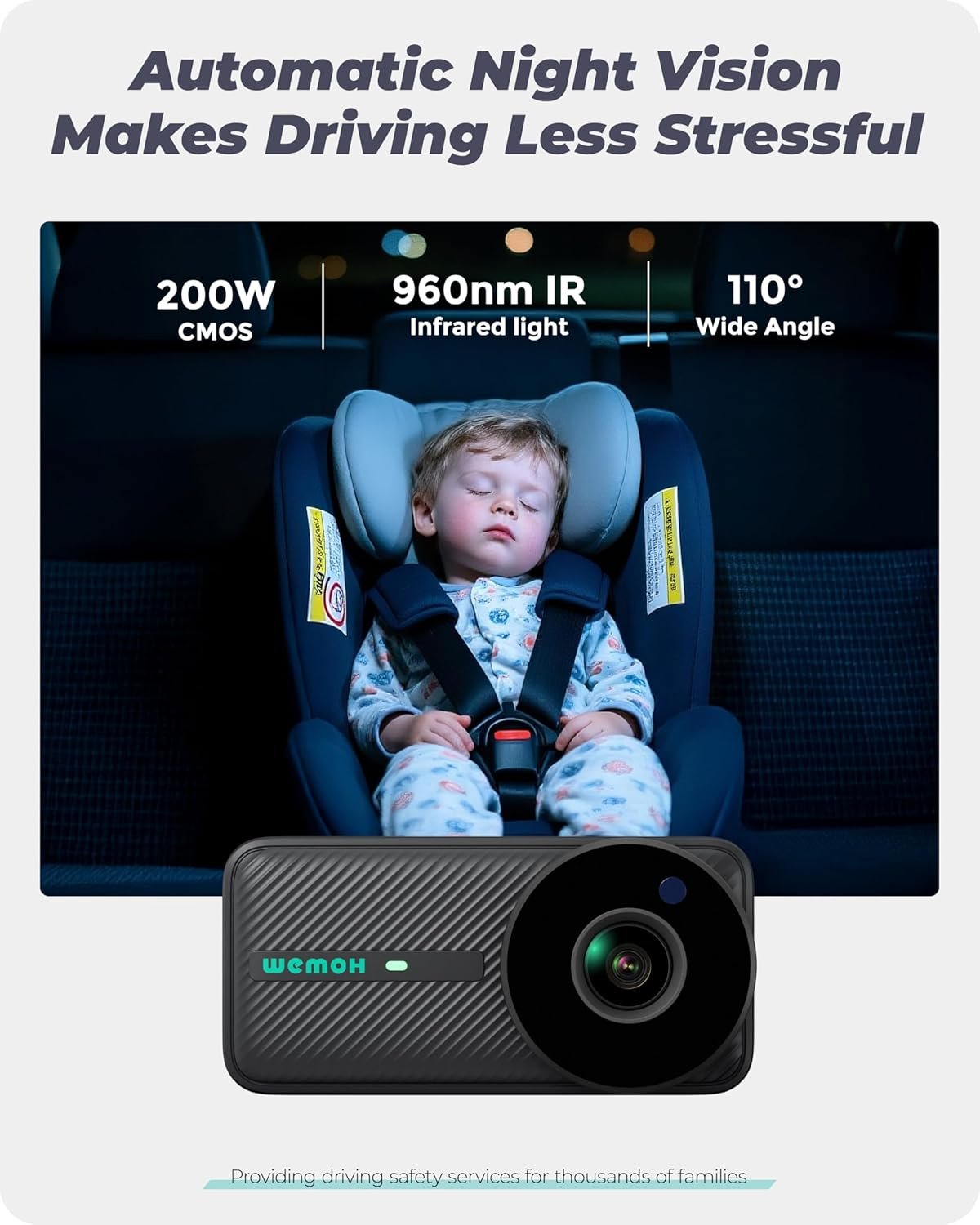 Auto Night Vision: Advanced light sensors automatically activate night mode in low light. Crisp black-and-white video ensures clear visibility, even in total darkness. Our baby camera for car features 940nm IR LEDs designed for baby’s comfort