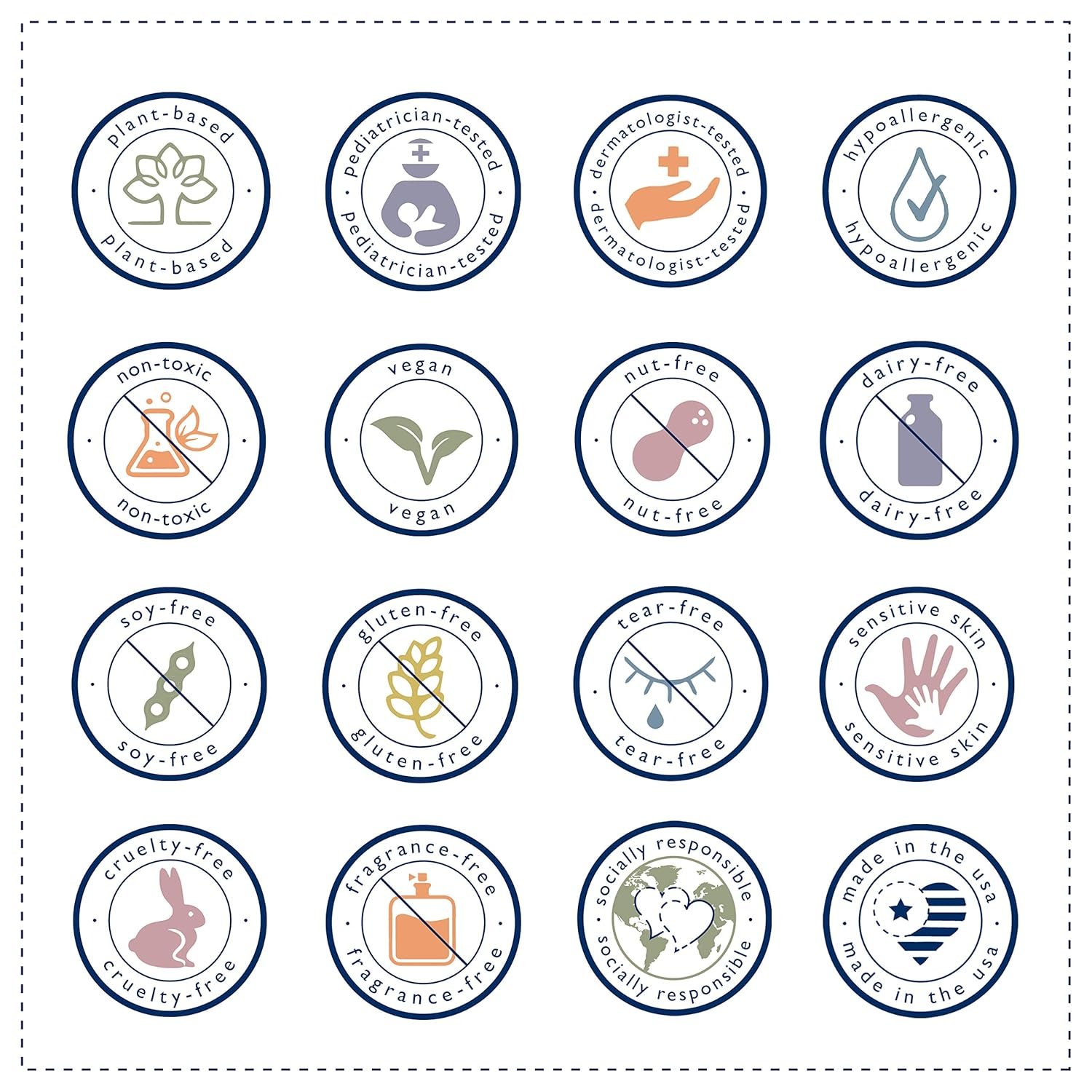 Paraben-Free Preservative-Free Phthalate-Free Dye-Free Pediatrician-tested Dermatologist-tested Cruelty-free Made in USA