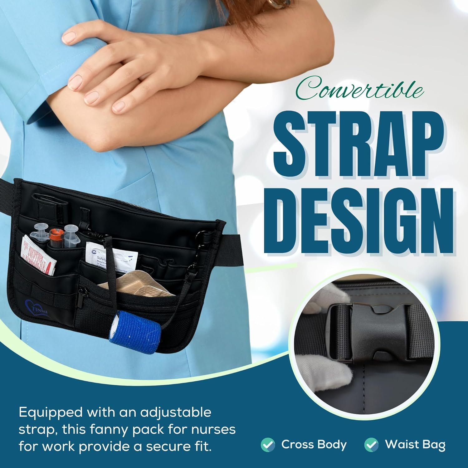 Fanny pack for nurses for work – Fits waist size 32″ – 49″ – adjustable, compact, and durable – Nursing fanny pack provides enduring support without slowing you down.