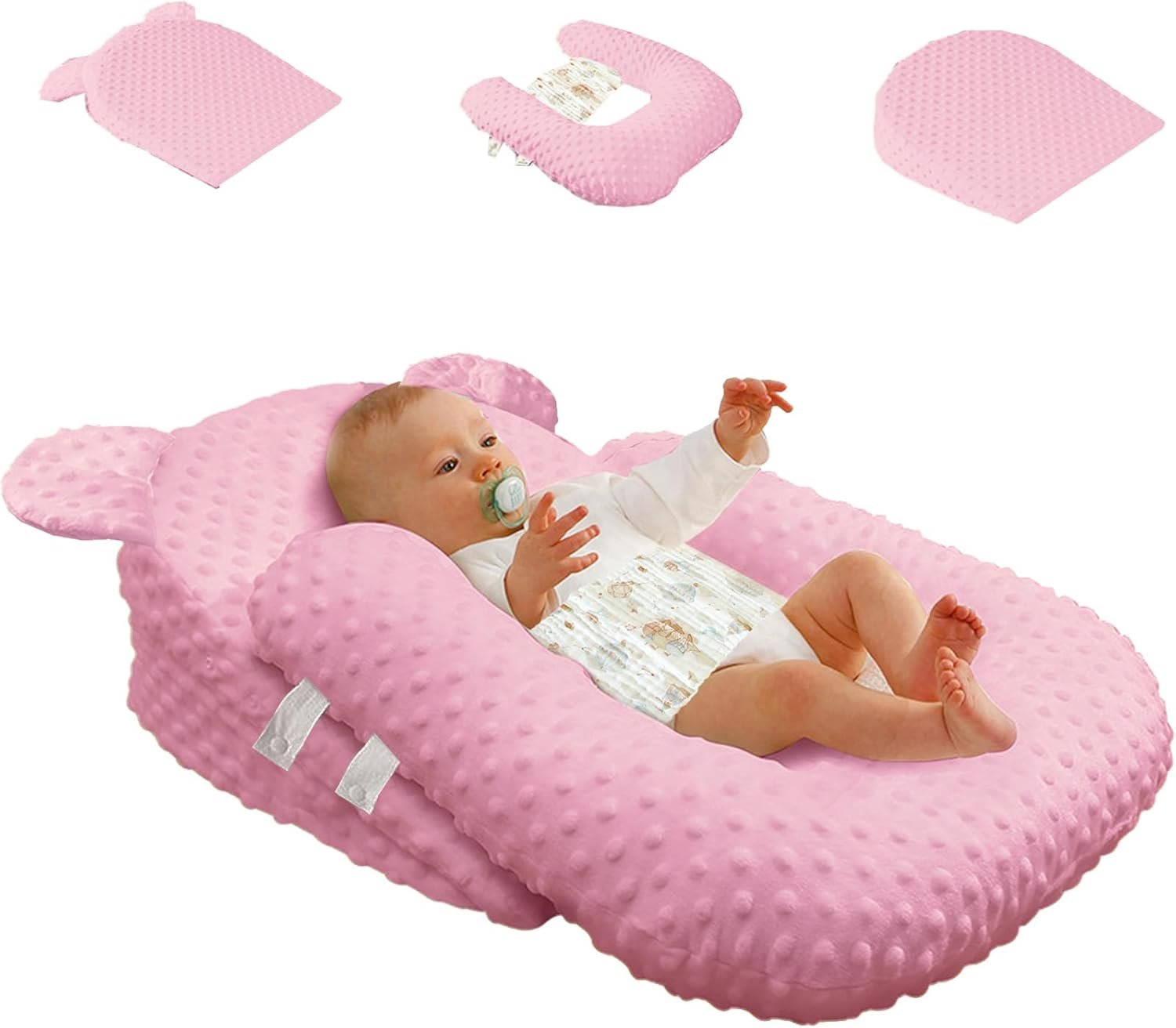 Design: According to ergonomic principles ,Baby nest sleeper pillow is designed scientific prevention of vomiting from various angels and comes with 2 removable wedge pillows, helping reduce spit-up to make every feeding more comfortable. Baby pillow with central depression to prevent flat head. Our baby wedge pillow comes equipped with an Anti-startle and U shape safe bumper around design, providing your baby sufficient sense of security and support your baby in a stable upright position , protecting the baby from collisions. Get the ultimate nursing comfort with our breast feeding pillow designed for optimal comfort!