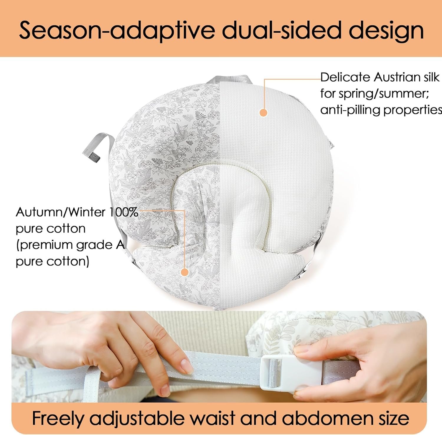 Premium Quality and Seasonal Adaptability: Crafted from superior-grade A-level pure cotton with anti-pilling properties, this nursing pillow offers versatility with its dual-sided design—100% pure cotton for autumn/winter and exquisite Austrian silk for spring/summer, providing year-round comfort. Meticulously stitched for durability and detail.