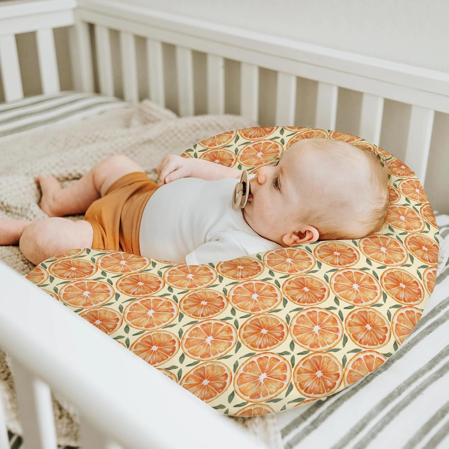 【Adorable Orange Design:】The unique pattern adds a simple and cozy feel to your baby’s room, ideal for a themed nursery. Perfect for both baby boys and girls.