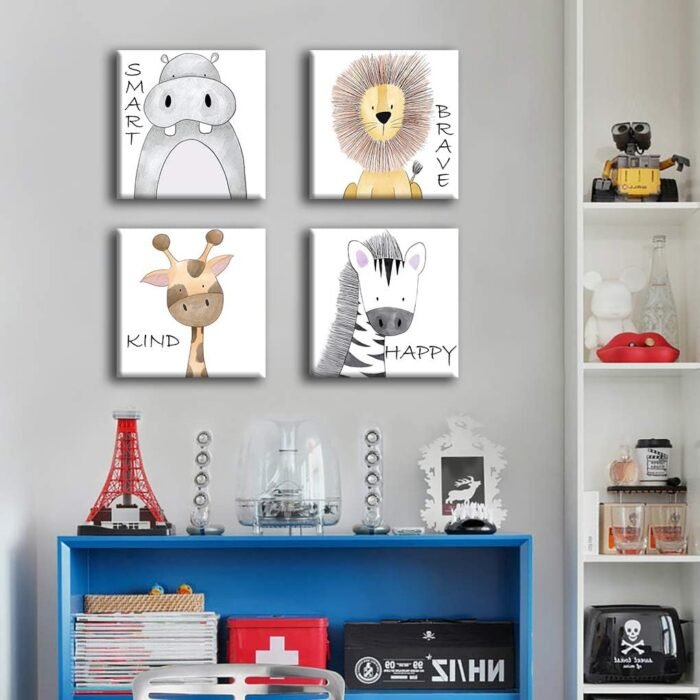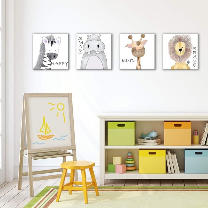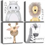 Customers find the wall art visually appealing, with one mentioning their children love looking at the animals. Moreover, the product receives positive feedback for its quality and ease of hanging. Additionally, customers appreciate its suitability for nurseries, particularly noting it’s perfect for both grandkids’ rooms and church nurseries.
