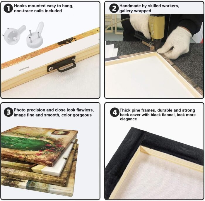 Ready & Easy to Hang – Built to last, each wall art already mounted a hook in the back and traceless nails inlcuded, neat flannel covered the staples make the back look clean.
