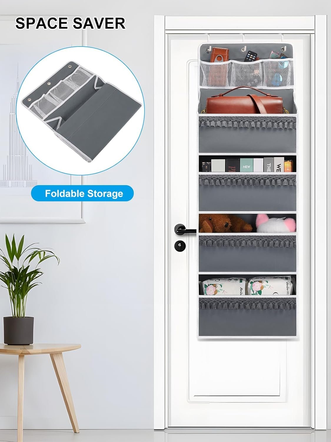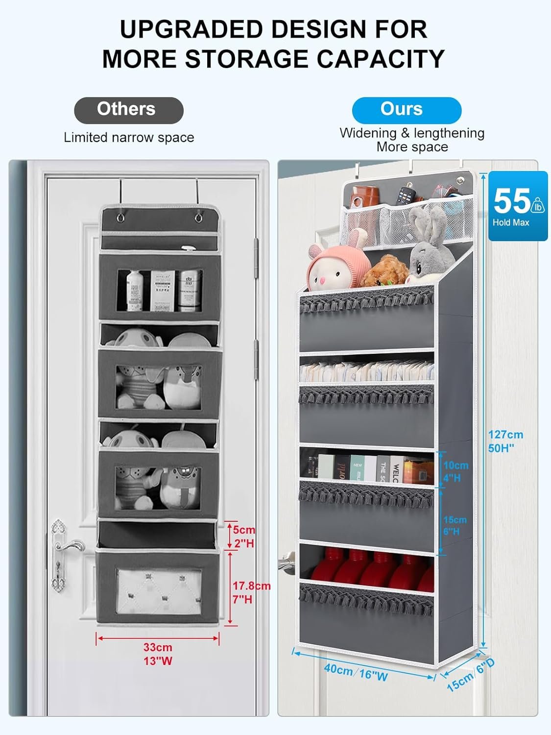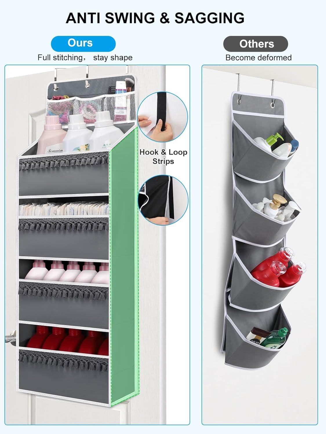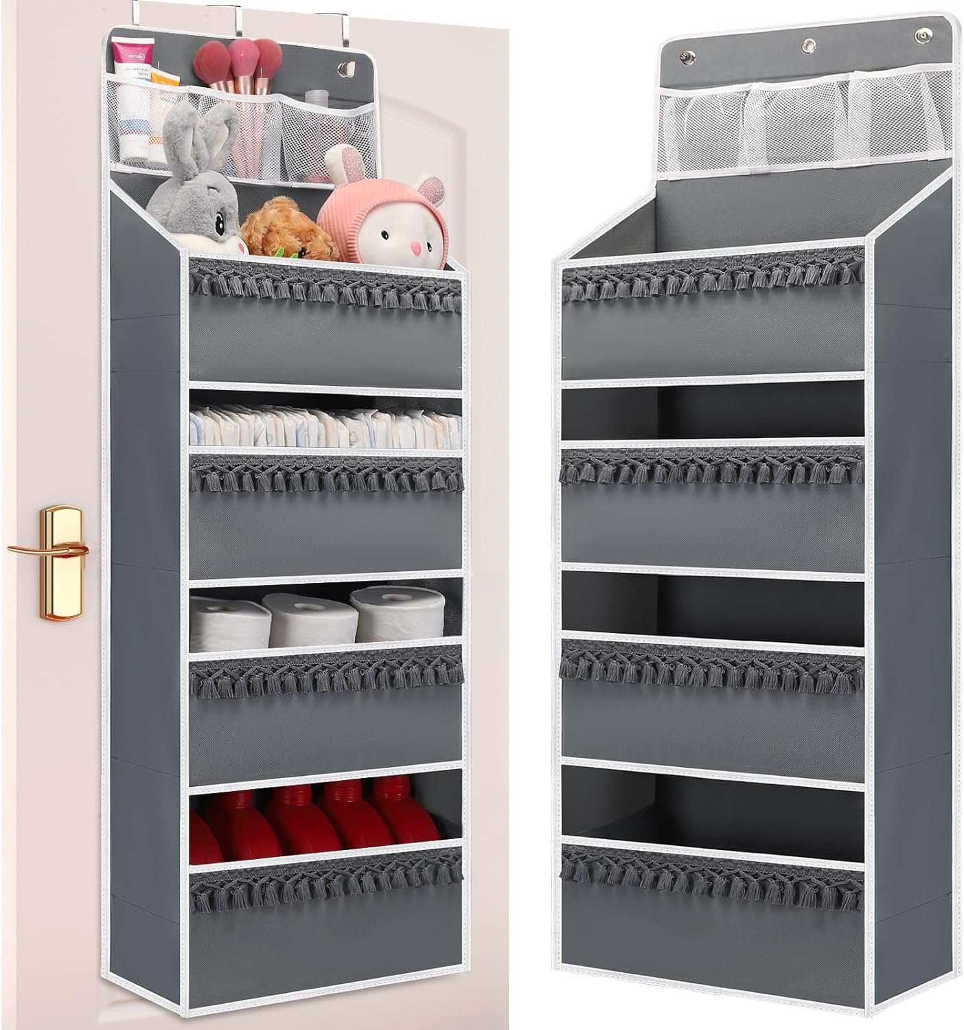 Space Saving: This over-the-door storage organizer can be used on different doors. Hang it on the doors of nurseries, bedrooms, bathrooms, laundry rooms, college dormitories, utility rooms, closets and cabinets, etc; it can hold many small things and create extra storage space where you need it