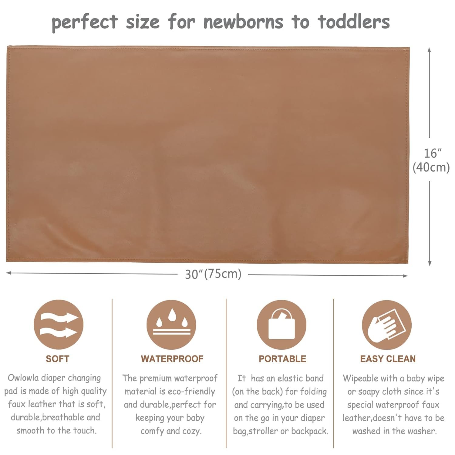 PREMIUM QUALITY:This Owlowla diaper changing pad is made of soft and smooth faux leather,it’s soft,durable and breathable