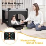 【4-in-1 Convertible Nursery Essential】Combines a playpen, removable diaper changing station, bassinet layer for newborns, and storage basket. The soft, hypoallergenic mattress supports healthy sleep and playtime for babies from 0 to 36+ months.