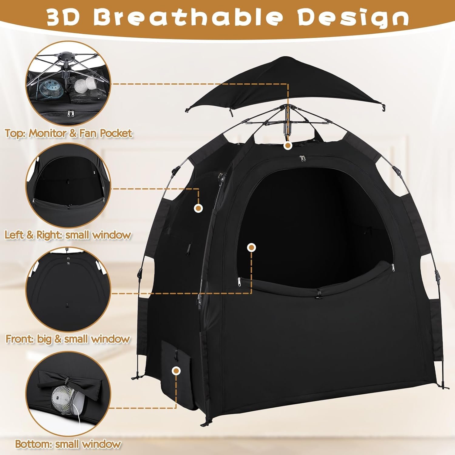 Comfort and Breathability:Sleep pod kids is made from high quality breathable fabric. Pack n play tent has multiple breathable windows for mini fans or monitors to keep baby comfortably cool and airy on hot days