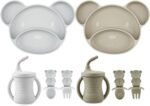 PandaEar Silicone Baby Feeding Set, Baby Led Weaning Supplies 8 Pcs, Divided Suction Plates, Sippy Cup, Spoons & Forks for Toddler 6 Months+
