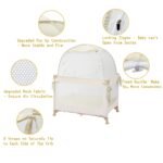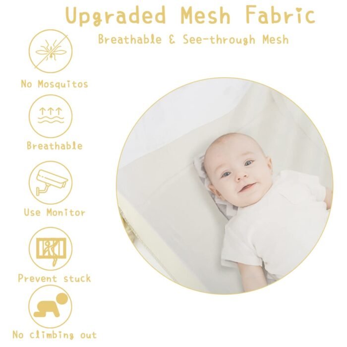 The safeguard for your baby escapees! Are you worried that your baby get bite, get caught between railings, or climb out of the playpen/ pack n play/ mini crib? This high-end pack and play canopy is your dream solution. You can indulge yourself in a peaceful sleep. Your baby will not get tumbled, or escape from the crib if you use our pack n play tent to keep baby in. No need to assemble! All you need to do is to take out the crib net to keep baby in, and put it in the pack n play/playpen/mini cribs/play yards. What You Get 1 x Baby Pack N Play Tent 100% satisfaction guarantee—Please contact us if you have any question about the baby net for crib! Specs & Details Color: beige Size: 3.3×2.3×4.1 FT Package size: 12.2×12.2×2 inches Fit Mini Cribs / Pack N Play / Playpen / Play yard Weighs: about 3 lbs How to Enjoy Follow install instructions—no tools required Give your curious baby freedom to move + wide range of vision Sleep well knowing they’re super safe and comfortable!