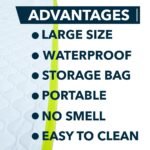 Travel friendly – Folds to a tiny size Large unfolded size – Full body protection Waterproof – Shields against leaks Reinforced Seams – Quality that lasts FREE storage bag – Change on-the-go Reusable – Economical and convenient Easy to wash – Accidents disappear with just one wipe No chemicals – Hypoallergic and safe for your baby