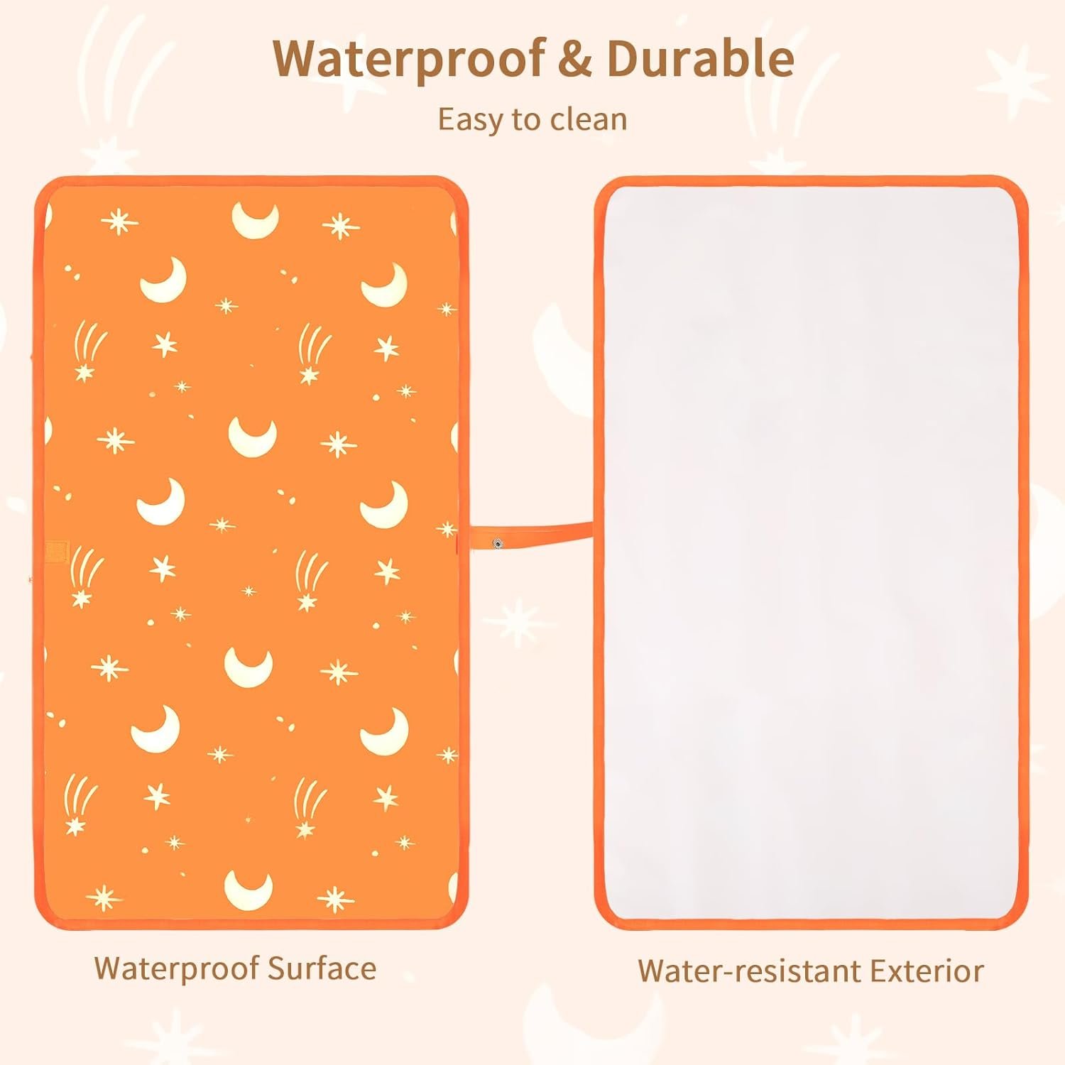 Effortlessly Cleanable: Say goodbye to messy diaper changes with our waterproof changing mat. The waterproof oxford fabric exterior and waterproof PEVA on the inside make it easy to wipe clean with a damp cloth. Suitable for use both inside and outside, this is an essential item for busy parents.