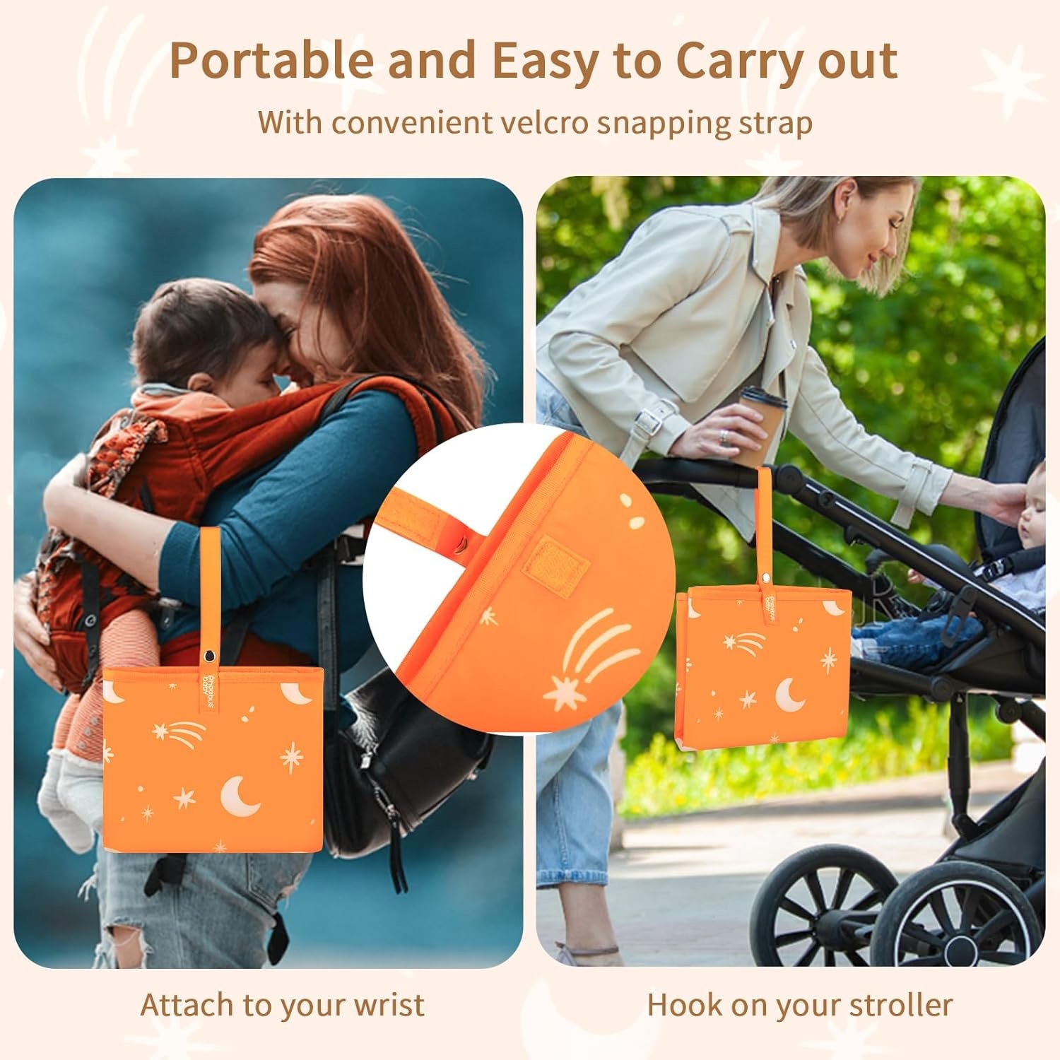 Portable with Wrist Strap: Our travel changing pad ensures easy and convenient carrying with a versatile wrist strap for seamless attachment to strollers, bags and wrists. Easy to take with you wherever you go. A must-have accessory for every baby on travel and outings.