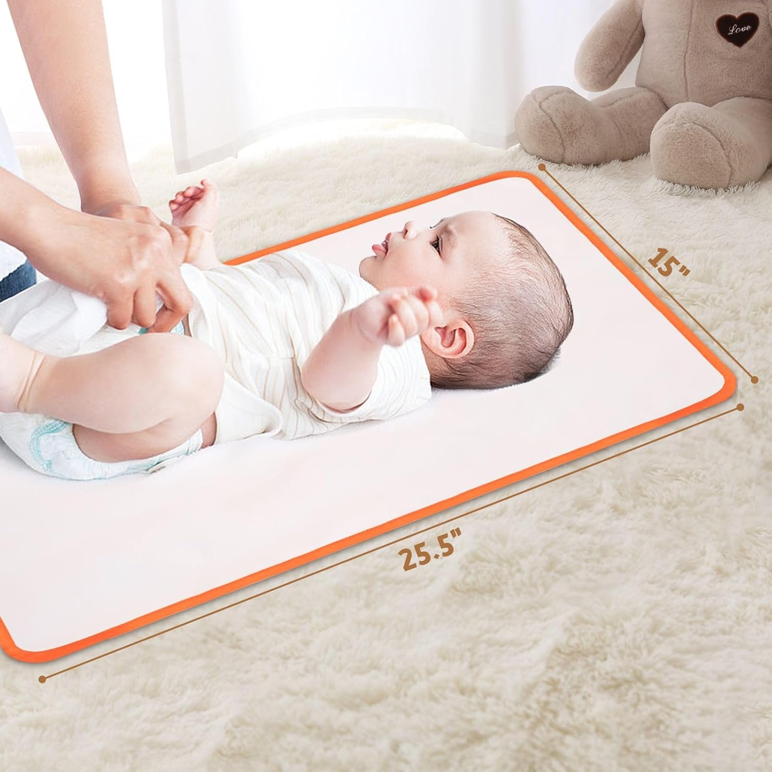 Foldable Compactly: Make diaper changes a breeze with our baby changing pad. Simply fold it into a 7″ by 8.5″ clutch for convenient storage. Our portable changing mat fits effortlessly into any diaper bag. The foldable design and lightweight construction make it ideal for on-the-go parents.