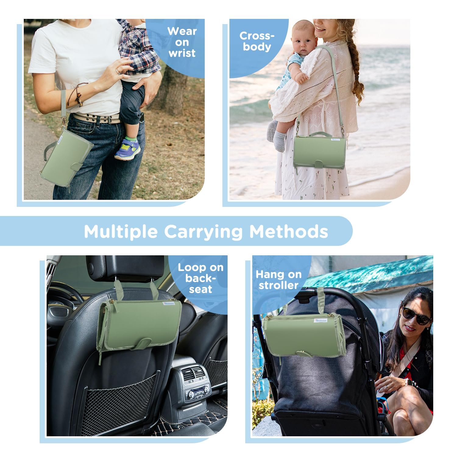 Easy storage: Take pleasure in easy access to wipes whether the portable changing pad is opened or folded. Simply place your favorite wipes or reusable pouch in the smart pocket for quick & convenient repossession. The outer pocket of the baby changing station is perfect for parents’ possessions, and the two inner mesh pockets conveniently organize baby supplies. Safe the diaper changing mat to strollers, bags, or wrists with Velcro straps or a buckle loop for transport.