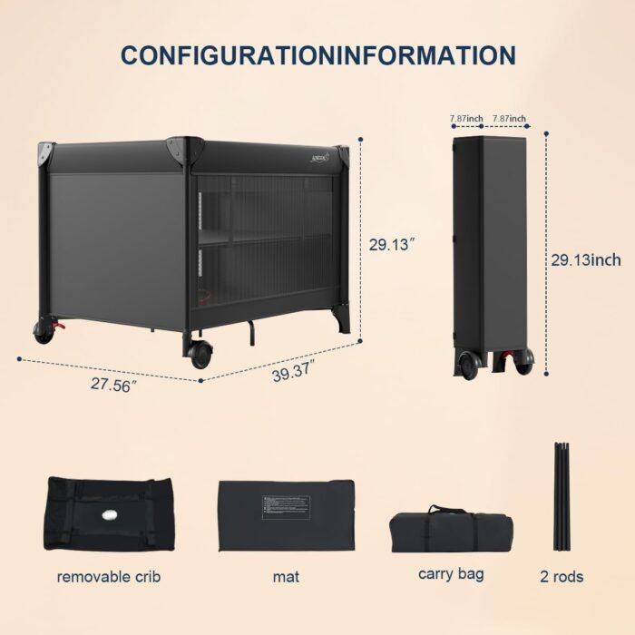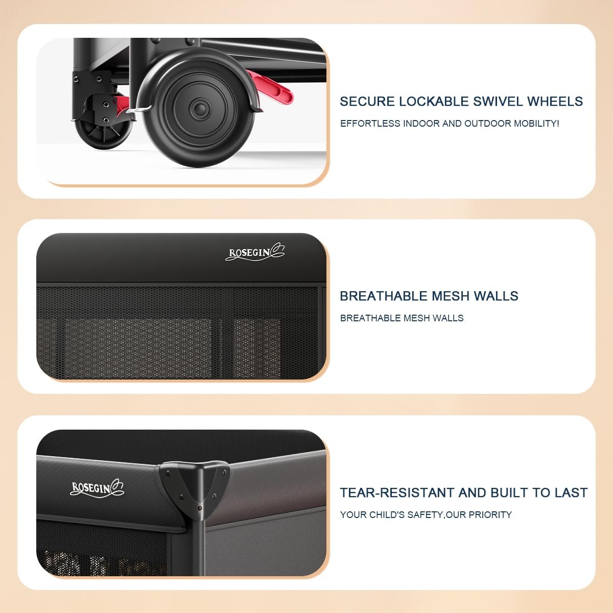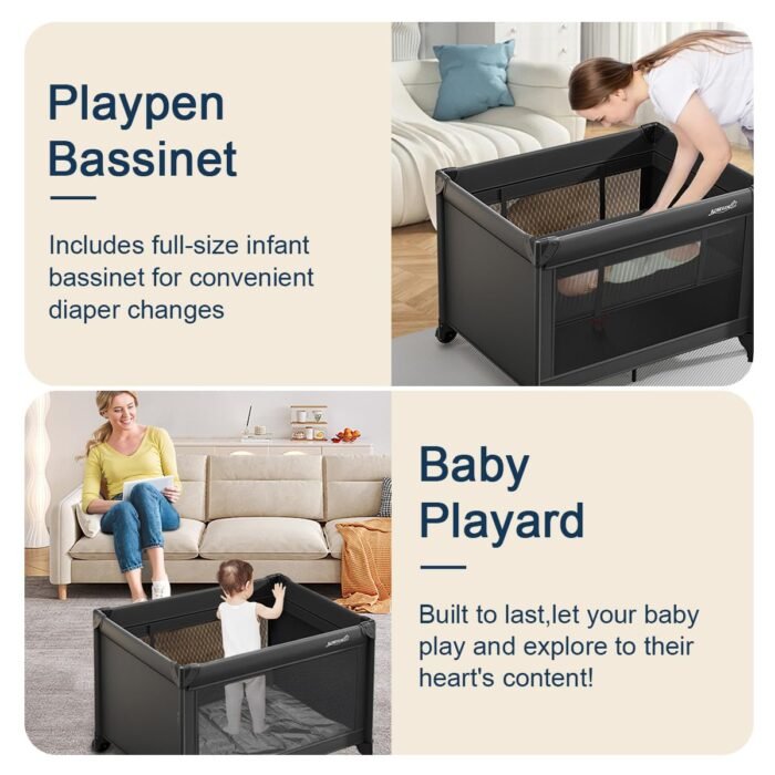 ✨ 𝐃𝐞𝐭𝐚𝐜𝐡𝐚𝐛𝐥𝐞 𝐏𝐨𝐫𝐭𝐚𝐛𝐥𝐞 𝐂𝐫𝐢𝐛:Our playpen with bassinet features a two-tiered bed structure designed to meet the needs of both sleeping and diaper changing for your little one. Whether it’s in the comfort of your home or while traveling outdoors, our playpen with bassinet can be easily assembled. Equipped with convenient wheels and a storage bag, you can effortlessly take it anywhere, whether visiting friends or camping outdoors.